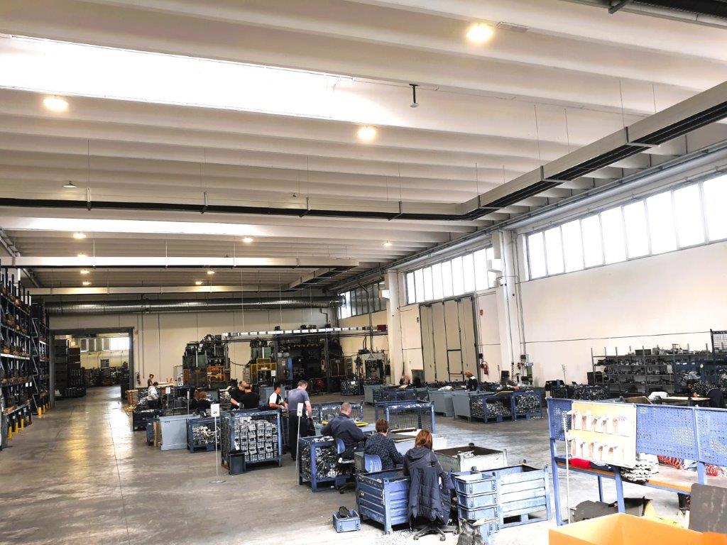 The sprue removal, manual or using a shearing press, allows for visual inspection of 100% of the material produced.